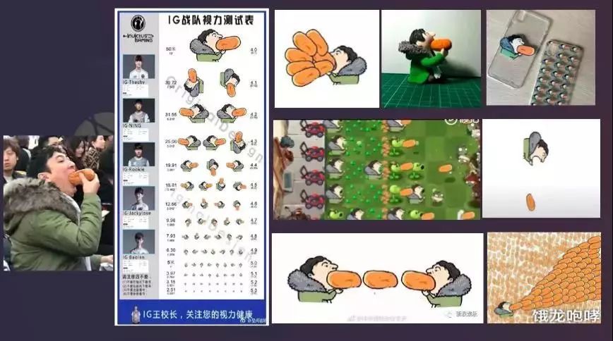 IG的奪冠占據(jù)了各大流量平臺熱搜榜的頂端,同時讓大家意想不到的到,一張王思聰吃熱狗的圖片毫無征兆的火了,鋪天蓋地地衍生出了頭像、表情包、手辦、手機殼,甚至視力表都出現(xiàn)了。即使王思聰發(fā)話求大家別再發(fā)圖,但依然擋不住廣大網(wǎng)友源源不斷的創(chuàng)作激情。