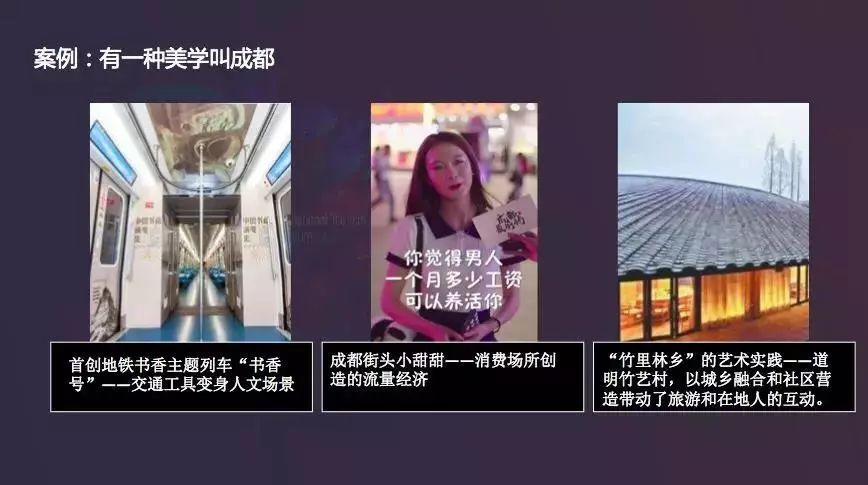 所以我們說,當找到了城市與人的情感紐帶的時候,城市中的人、旅游者就能變成傳播者,甚至會產(chǎn)生很多優(yōu)質的UGC內容。