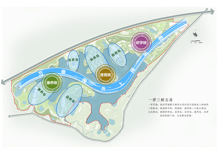 一帶貫通:做活貫通整個(gè)康養(yǎng)示范區(qū)的萬景湖水上休閑帶